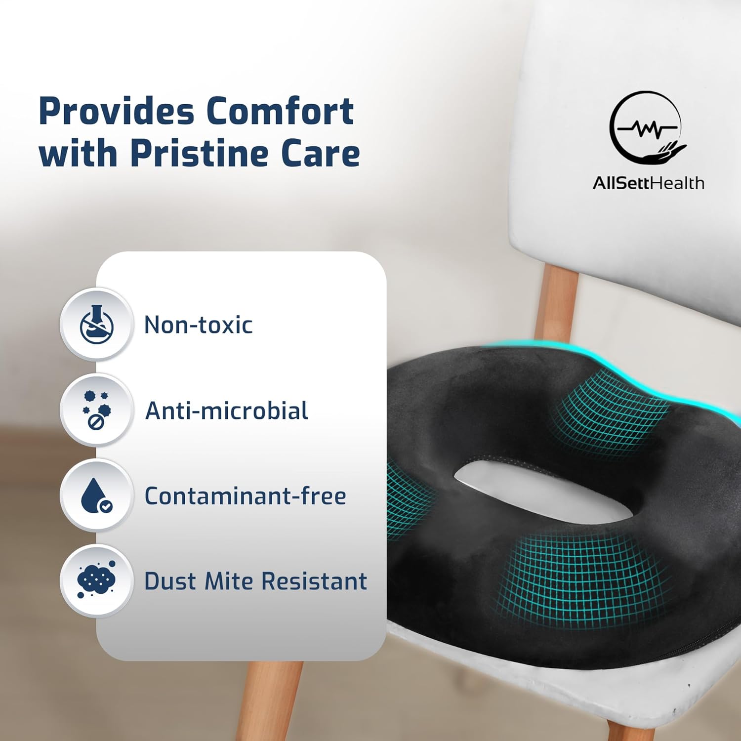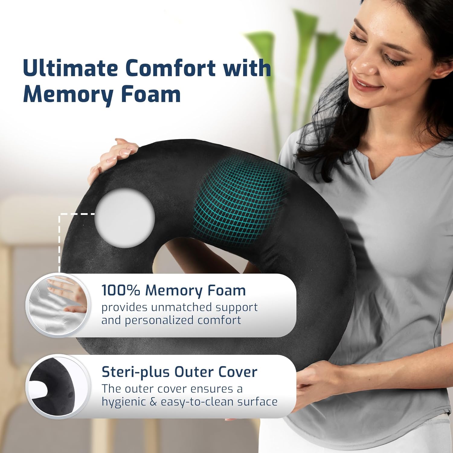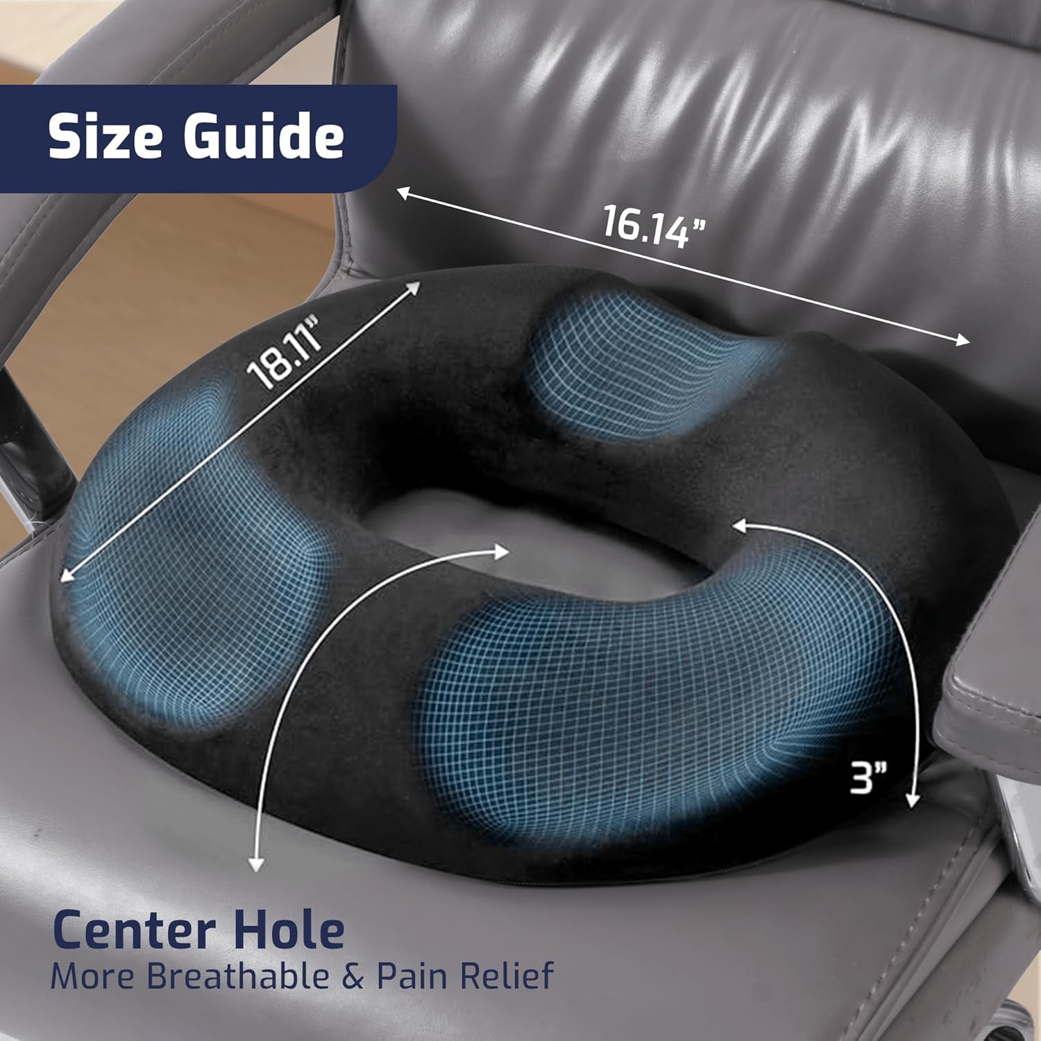 Curved Ergonomic Design: Gently supports the thighs and hips to improve posture and reduce fatigue during long sitting hours. Pressure Relief Center Hole: Reduces strain on the tailbone, coccyx, and pelvic area, ideal for hemorrhoid, postpartum, or post-surgery recovery. Premium Memory Foam: Adapts to your body shape for personalized comfort and consistent support. Breathable Washable Cover: Keeps you cool and fresh while making cleaning easy and convenient. Non-Slip Base: Ensures the cushion stays firmly in place on any seat surface.
