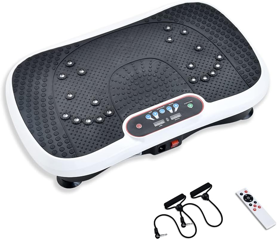 - Resistance Bands Included: For added versatility, the vibration plate comes with detachable resistance bands that allow you to incorporate upper body exercises into your workout. These bands help tone and strengthen your arms, shoulders, and back while using the plate.